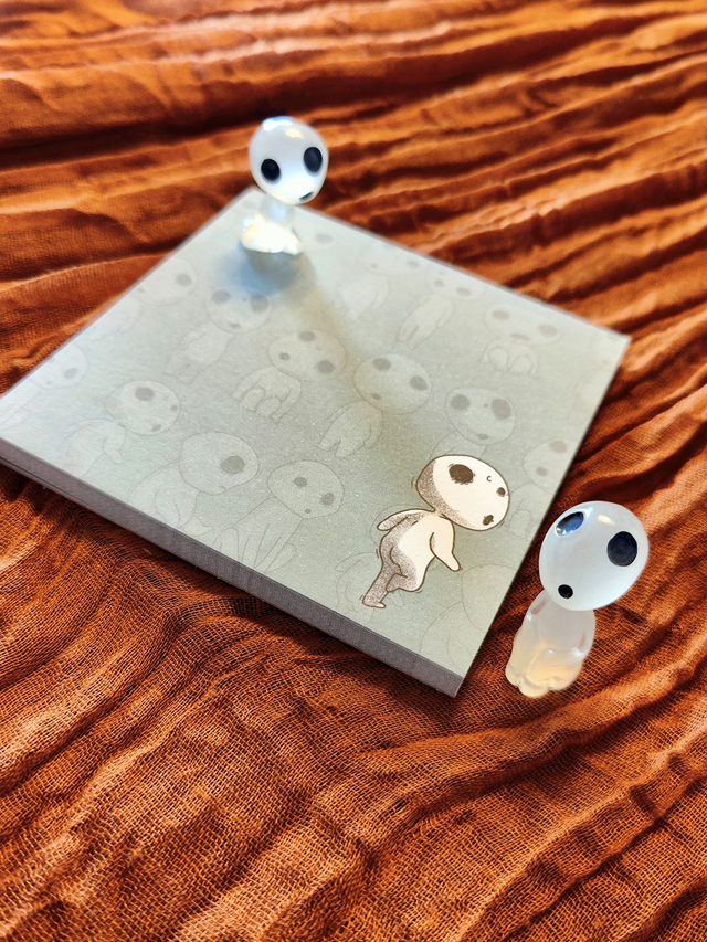 Laissez-vous inspirer par les esprits de la forêt, tout droit sortis d'un univers de Ghibli ! Ce bloc de feuilles détachables illustré est idéal pour noter vos idées, vos listes ou vos petits mots du quotidien, avec toujours une touche de magie à portée de main.